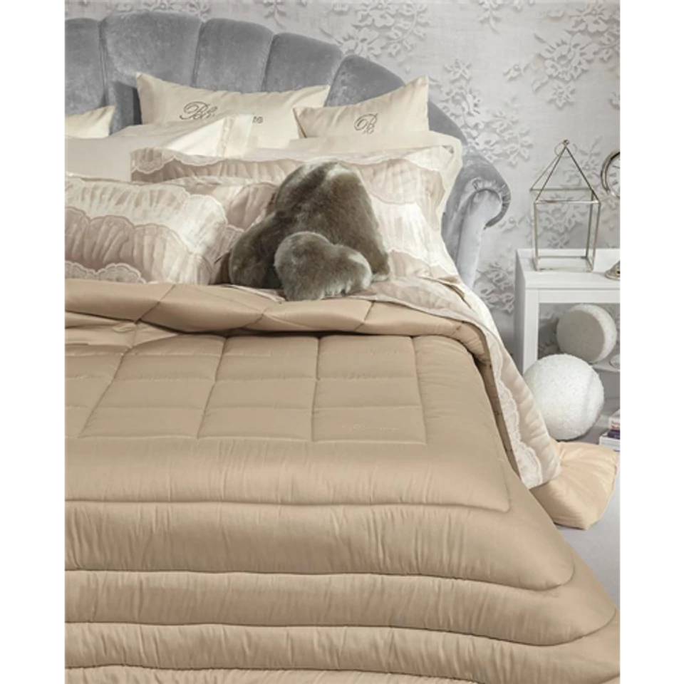 | Anyaga | Felső oldal: 100% pamut szatén Alsó oldal: 100% pamut Töltelék: 100% poliészter szál 340 gr/nm |